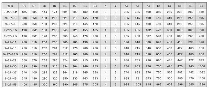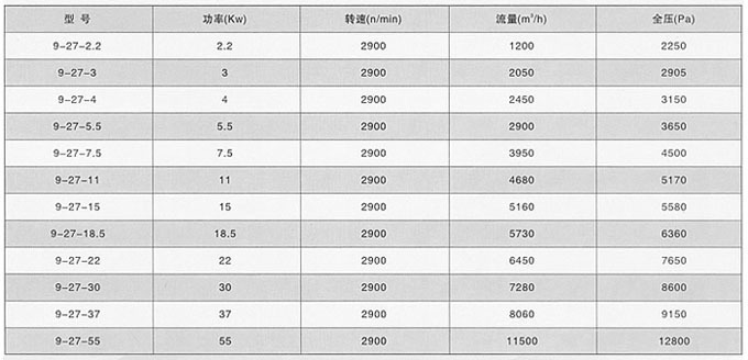 9-27离心通风机性能表: